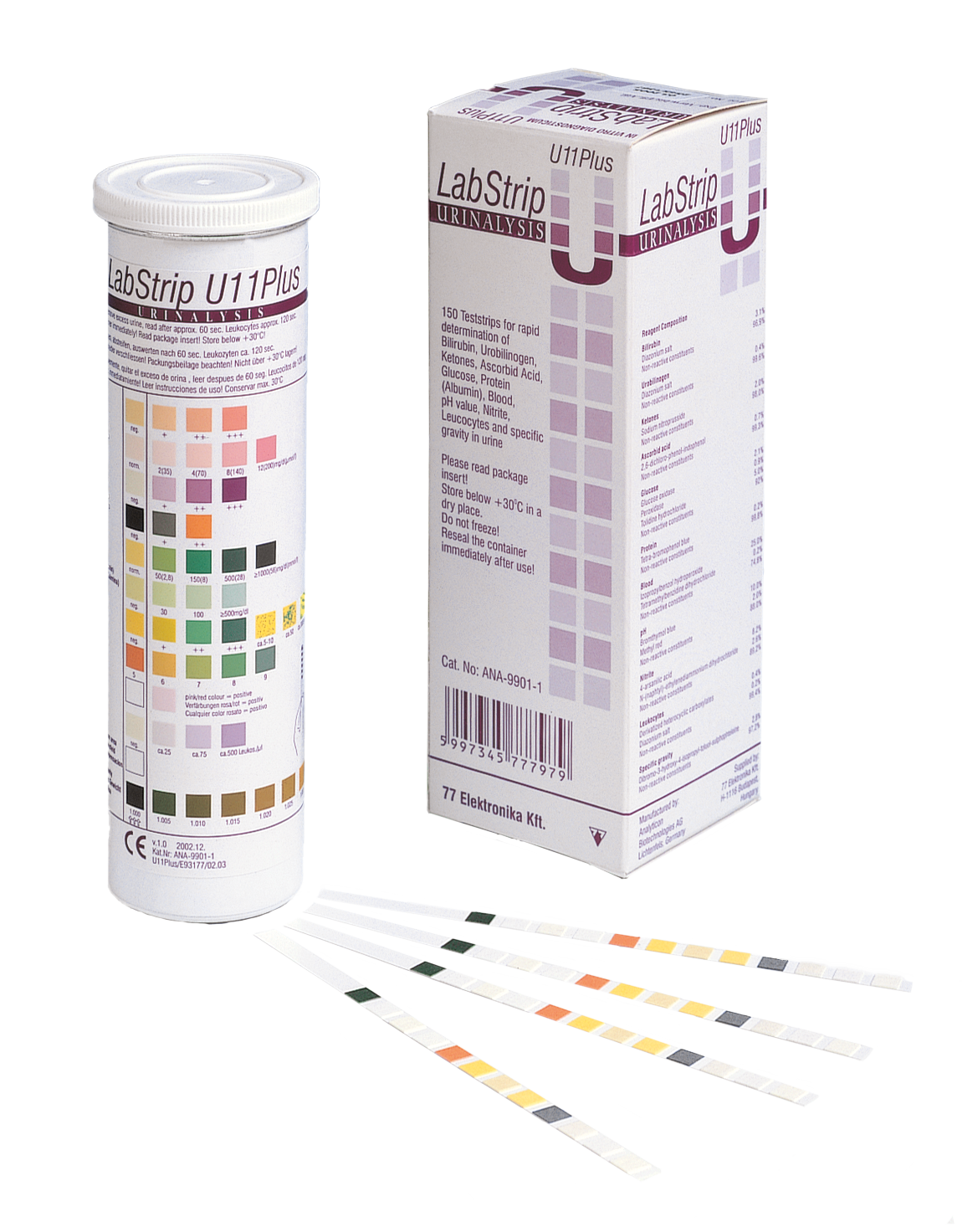 They are designed for semi-quantitative urine analysis from fresh urine. LabStrip U11 Plus and LabStrip U11 Plus GL test strips are intended to be used in screening tests for liver disease, biliary and hepatic obstructions, diabetes, and hemolytic, urological, and nephrological diseases associated with hematuria or hemoglobinuria, diseases of the kidneys and urinary tract, and pathologic shifts in pH, as well as for the investigation of urinary sediment.